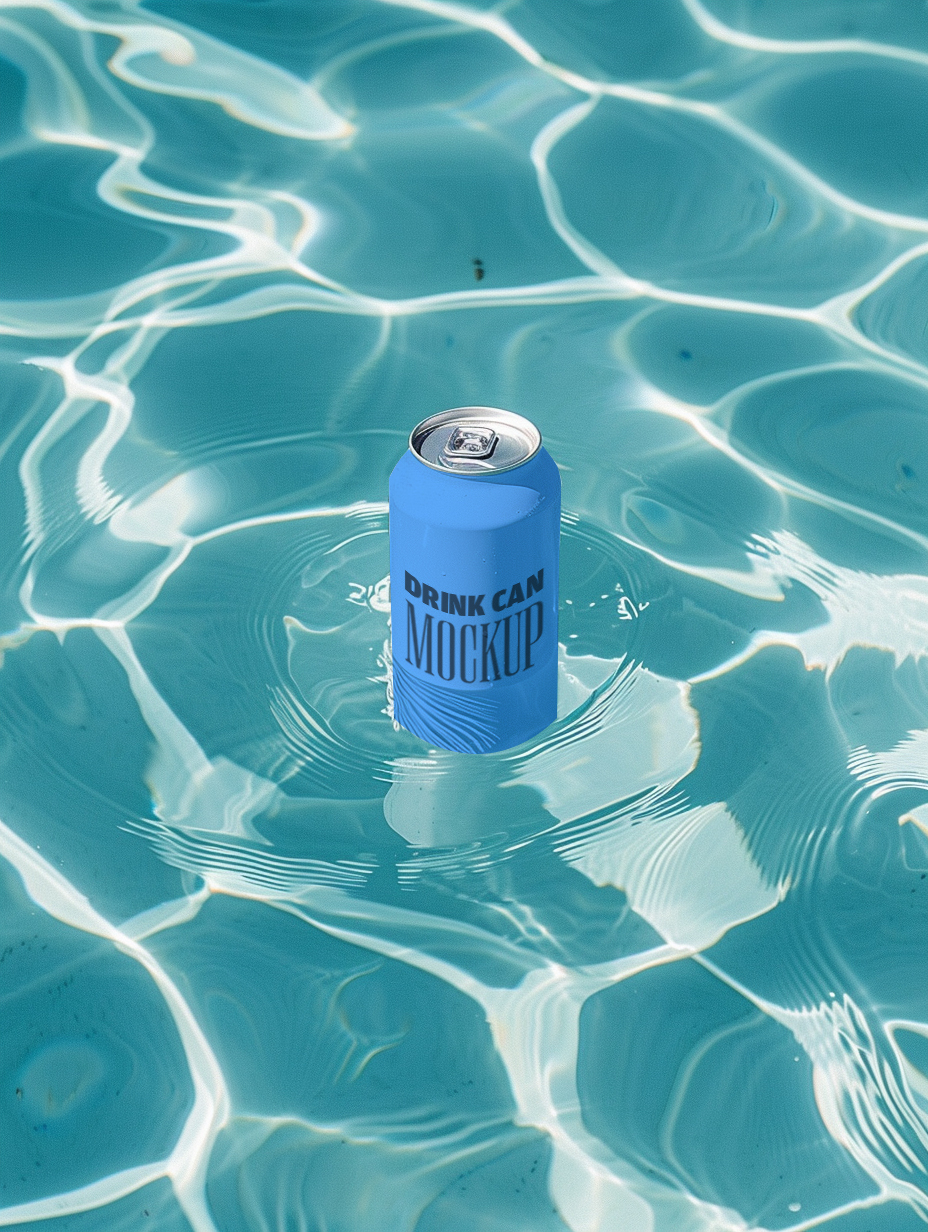 A can mockup in the pool – perfect for your design projects or shop. A unique mock-up that will help you stand out from the countless others out there!