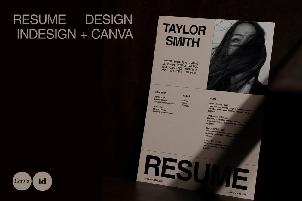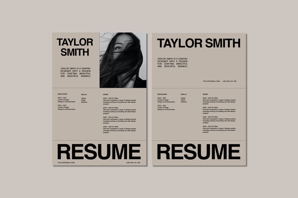 A professional template for those wanted to present well. Ideal for creatives, this template has two different options: one with a headshot and one without.